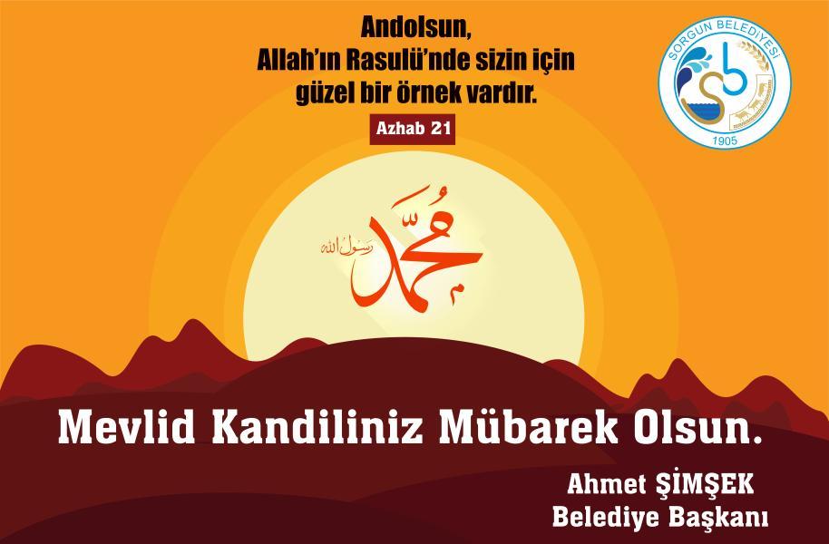 Sorgun Belediye Başkanı Ahmet Şimşek, Mevlid Kandili dolayısıyla bir mesaj yayınlayarak, tüm İslam aleminin kandilini kutladı.