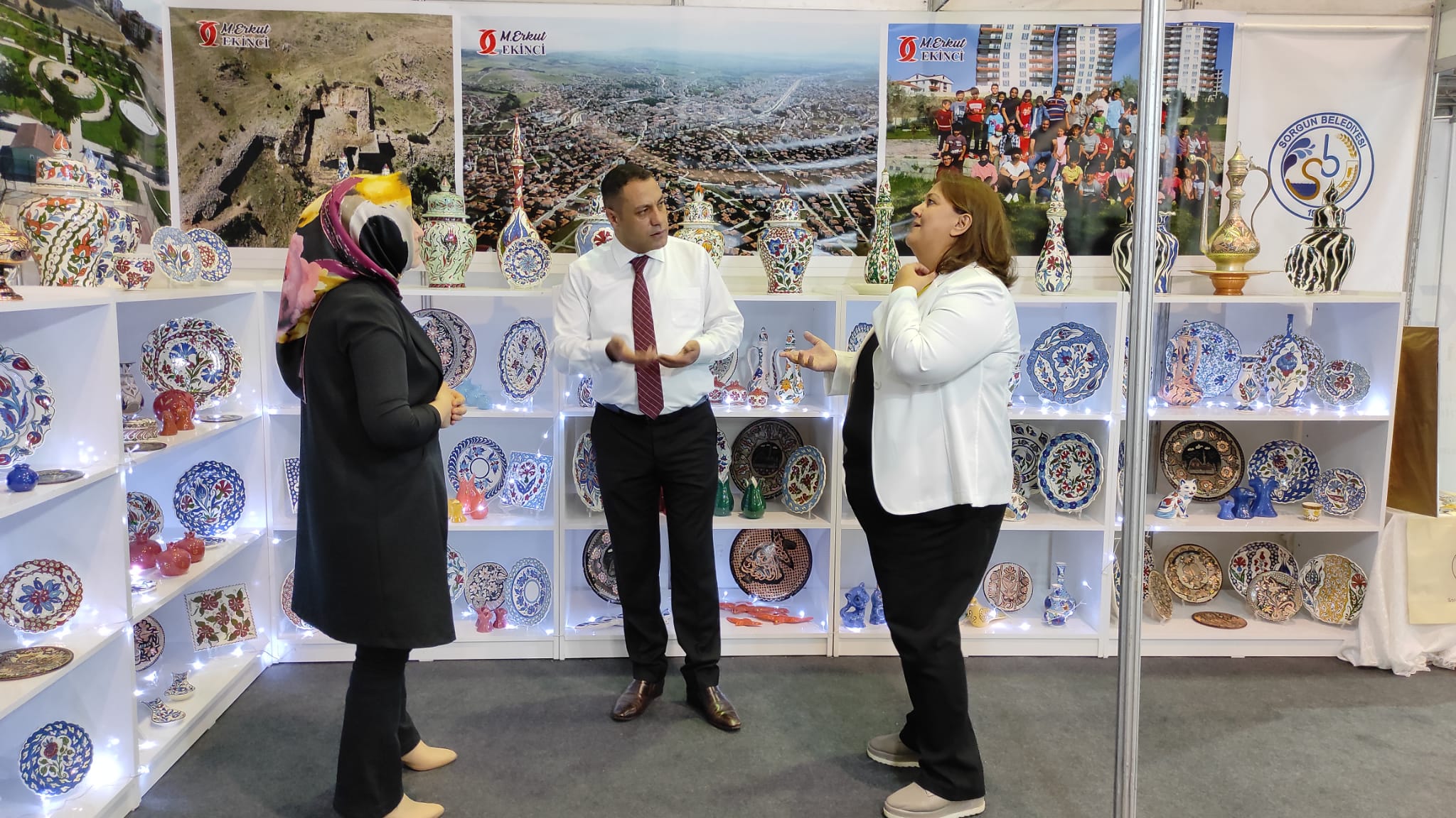 Açtığımız stantta SORMEK’te üretimi yapılan el emeği çini işlemeli ürünlerimiz, marka tescilini aldığımız Sorgun yağlımız, yöresel tatlarımızdan köme ve çanak çökeleğinin tanıtımını yaptık. Belediye Başkanımız M. Erkut Ekinci, standımızı ziyaret edenlerden övgüleri bizzat kabul ederek yoğun ilgi gören yöresel ürünlerimiz ve belediyemizin çalışmaları hakkında bilgilendirmelerde bulundu.