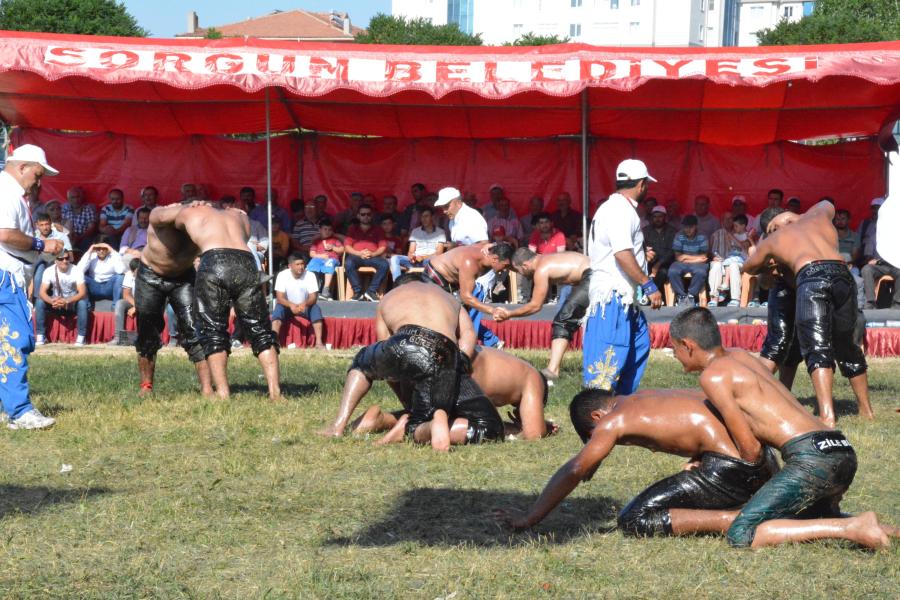 Sorgun İlçesi’nde bu yıl 9’uncusu düzenlenen geleneksel yağlı güreşlere vatandaşlar yoğun ilgi gösterdi.