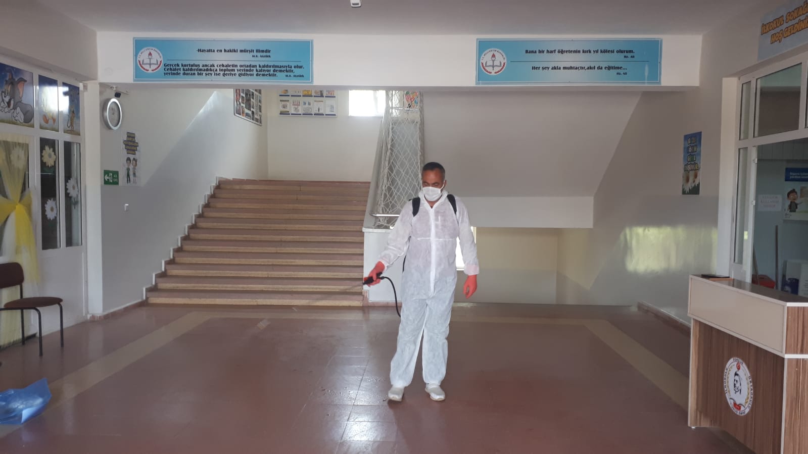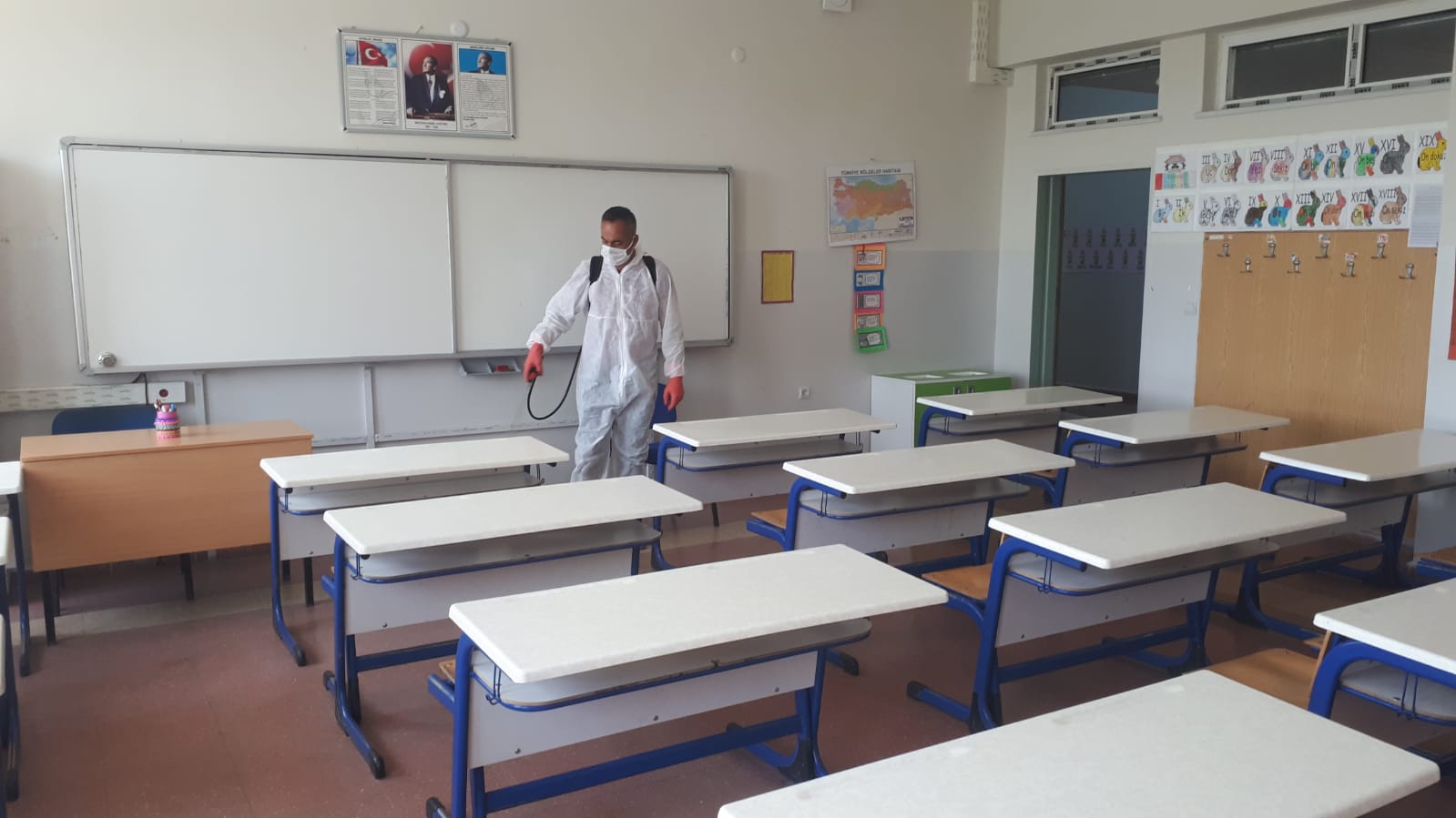 Sorgun Belediyesi, ilçe genelinde okulları ilaçlayarak hafta sonu yapılacak olan LGS sınavına hazırlıyor. Okulların giriş kapısından, kapı kollarına, merdivenlerden korkuluklara, masa ve sıralara kadar öğrencilerin temas edebileceği her alan titizlikle dezenfekte ediliyor. Dezenfeksiyon çalışmaları Milli Eğitim Bakanlığı tarafından sınav yapılması kararlaştırılan tüm okullarda cuma gününe kadar devam edecek. Yine 27-28 Haziran’daki Yükseköğretim Kurumları Sınavı (YKS) öncesinde de sınavların yapılacağı okullarda da ayrıca dezenfeksiyon çalışması yapılacak.