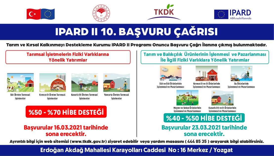 Tarım ve kırsal kalkınmayı destekleme kurumu 10.başvuru çağrı ilanına çıkmış bulunmaktadır