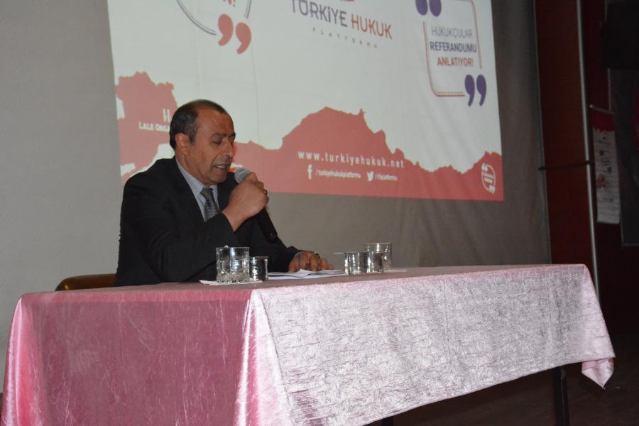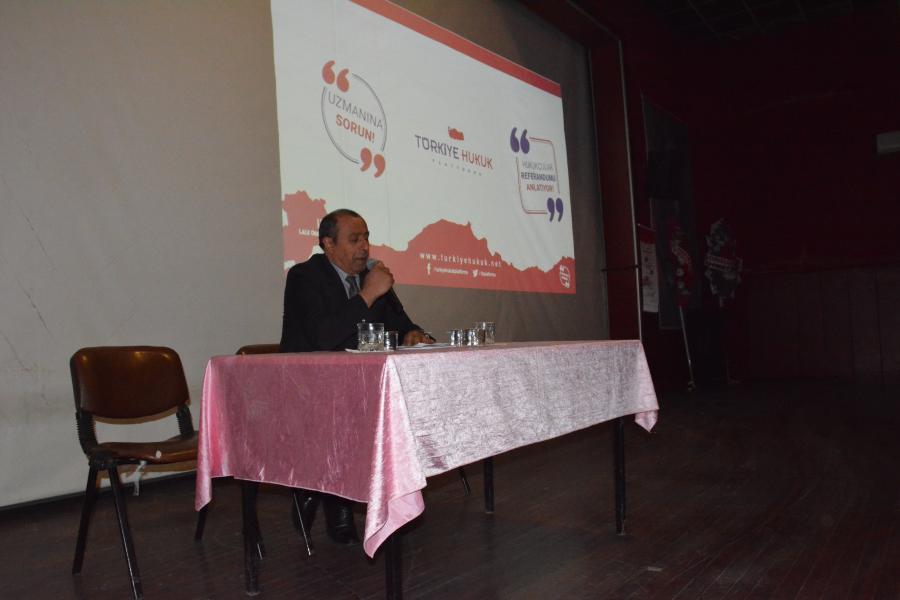 Konferansa konuşmacı olarak katılan Kişisel Verileri Koruma Kurulu Başkanı Prof. Dr. Faruk Bilir, Türkiye’nin anayasal sürecinden bahsederek anayasaların hazırlanış şekilleri, yaşanan problemler, çözüm yolları ve yeni anayasa paketi hakkında vatandaşlarla bilgilerini paylaştı. Prof. Dr. Faruk Bilir, anayasaların toplumsal sorunları çözen metinler olduğunu belirterek, “Osmanlı’dan bu yana Türkiye’de beş farklı anayasa yapılmıştır. Son iki anayasamız ise darbeciler tarafından yapılmış anayasalardır. Son anayasamızı yapanlar yargılandı fakat bu anayasa halen yürürlüktedir. 177 maddeden oluşan bu anayasa 18 kez değişikliğe uğramış ve 103 maddesi değiştirilmiştir.” dedi. Anayasaların yapıldığı dönemin ve hazırlayanların ruhunu yansıttığını dile getiren Prof. Dr. Bilir konuşmasını şöyle sürdürdü: “Mevcut anayasanın ruhunu değiştirmemiz gerekiyor. Yapılan darbelerin hepsi anayasa ihlali gerekçesi ile yapılmıştır. Önce ortam hazırlanmış sonra darbe yapılmış daha sonra da anayasa yapılmıştır. Anayasa hem devlet hem de toplum için bir düzenleyicidir. Bu zamana kadar bu düzeni darbeciler belirledi fakat artık bu düzeni halk belirleyecek. Bu ülkede normal zamanda da anayasa yapılabileceği bilinmeli. 1982 anayasasını bir kenara bırakmadığımız sürece sorunlar bitmeyecektir. Önümüzde bir referandum var ve millet ne derse o olacak. Bu yüzden uzlaşma ile bizim değerlerimizi yansıtan bir anayasanın yapılması gerekmektedir. İstikrar için güçlü bir anayasaya sahip olmalıyız” diyen Prof. Dr. Faruk Bilir konuşmasının son bölümünde ise 15 Temmuz gecesi yaşananlara dikkat çekerek, “15 Temmuz öncesinde ‘bu ülkede darbe olur mu?’ şeklindeki sorulara olmaz yanıtını verirdim fakat bundan sonra aynı soru tekrar sorulsa ‘darbe olabilir fakat böyle bir kalkışmada millet bu harekete hak ettiği cezayı keser’ yanıtını veririm. Türkiye bu tip müdahalelere maruz kalabilecek bir ülkedir. Türkiye’de gelecekte istikrar olması isteniyorsa ve Avrupa’ya, Batı’ya karşı dimdik durabilmemiz gerekiyorsa güçlü bir anayasaya sahip olmamız gerekiyor.” şeklinde konuştu. Konferans, katılımcıların sorularının cevaplandırılması ve Sorgun Belediye Başkanı Ahmet Şimşek’in, Prof. Dr. Faruk Bilir’e katılımların dolayı teşekkür ederek plaket takdiminin ardından sona erdi.